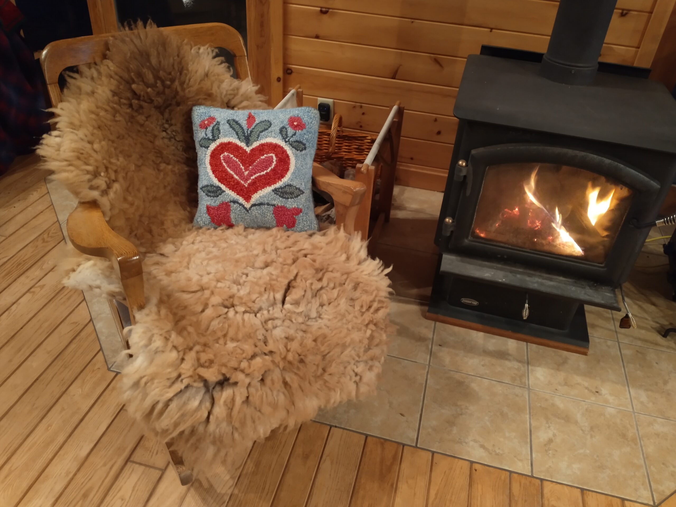 Nothing says cozy quite like a full sheepskin on a bench, chair, bay window seat, or the floor next to your bed. With a luxurious fleece from our sheep, you might as well cuddle up and disappear! This also makes a great gift item for warming a home. The hide is supple and naturally tanned by a local, woman-owned small buisness using a bark tanning method. This makes our sheepskins a win-win for your comfort, the environment, and sustainably-oriented entrepreneurs, as well as honors this beautiful part of the animal.