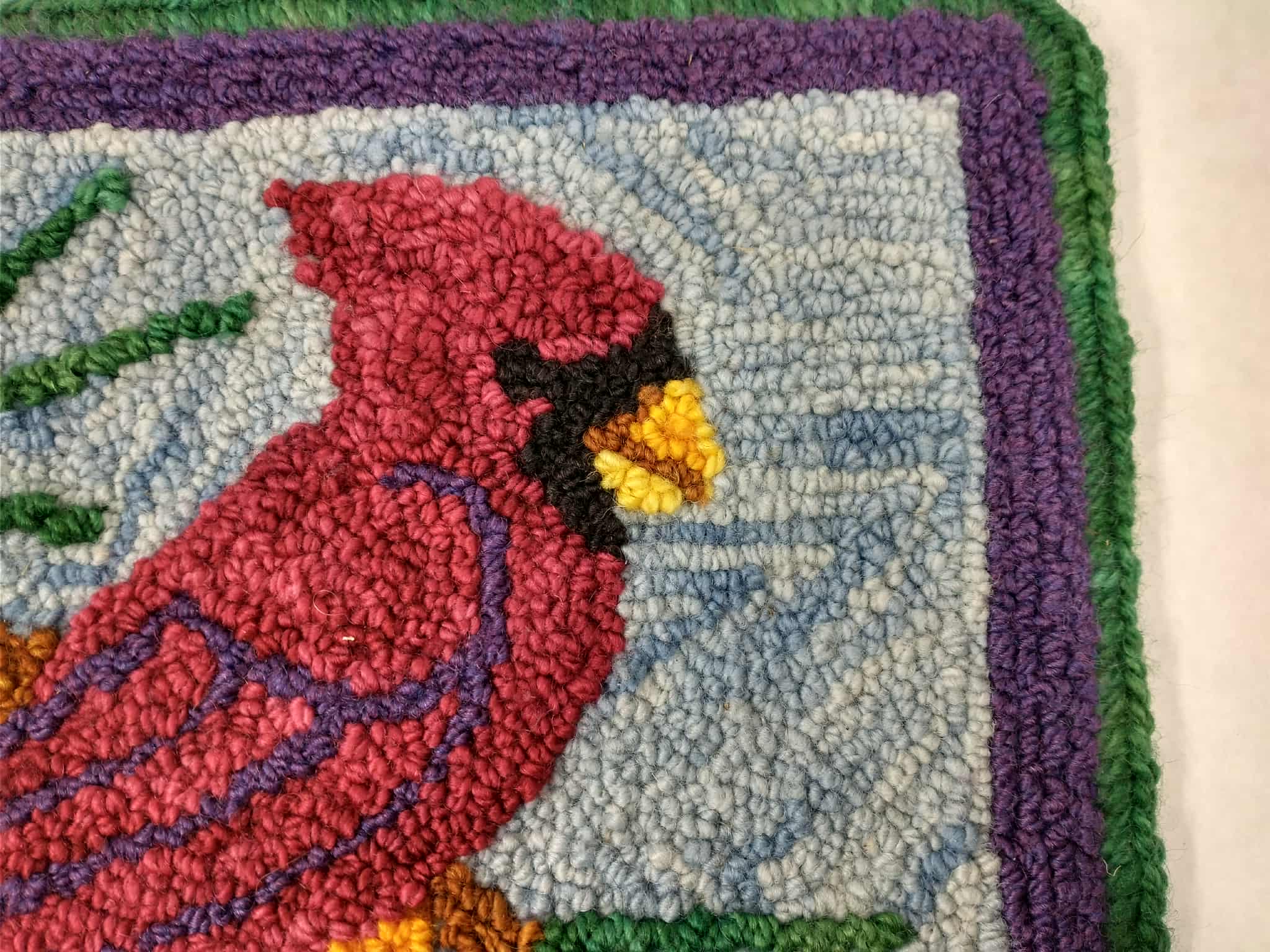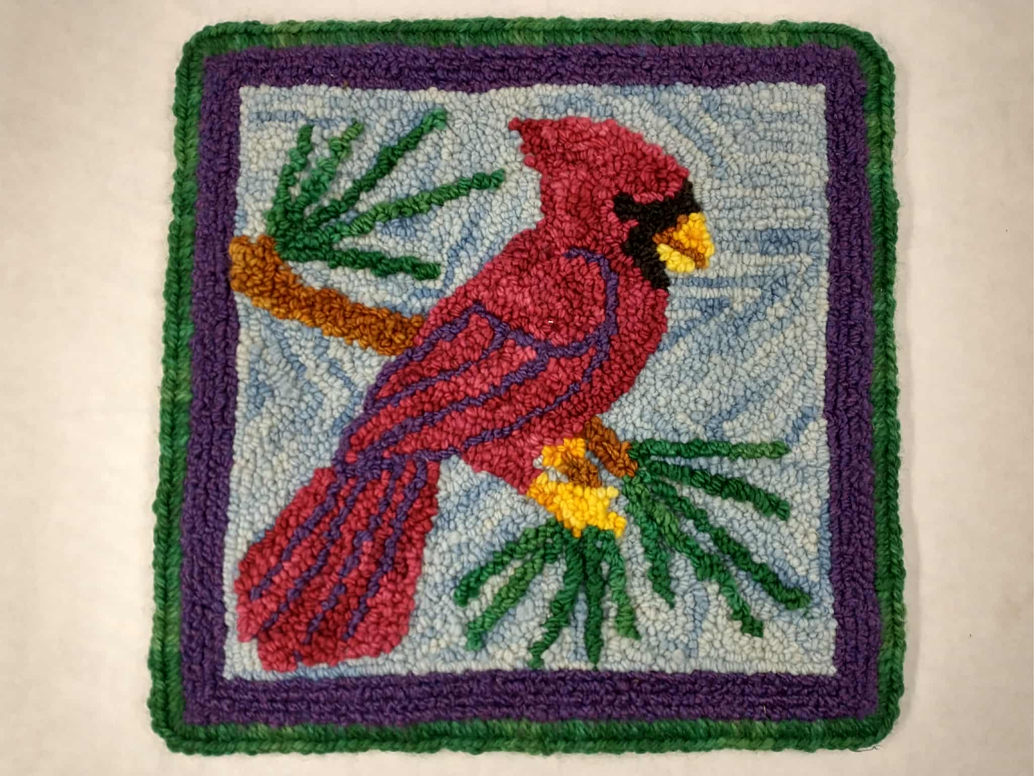 Made using a looped pile method and hand dyed yarn from our sheep, this charming piece can be enjoyed on the wall, on the table, on a chair, stitched to a pillow, and so much more! Desgined and created by Laura Berlage. 10.5×10.5 inches.